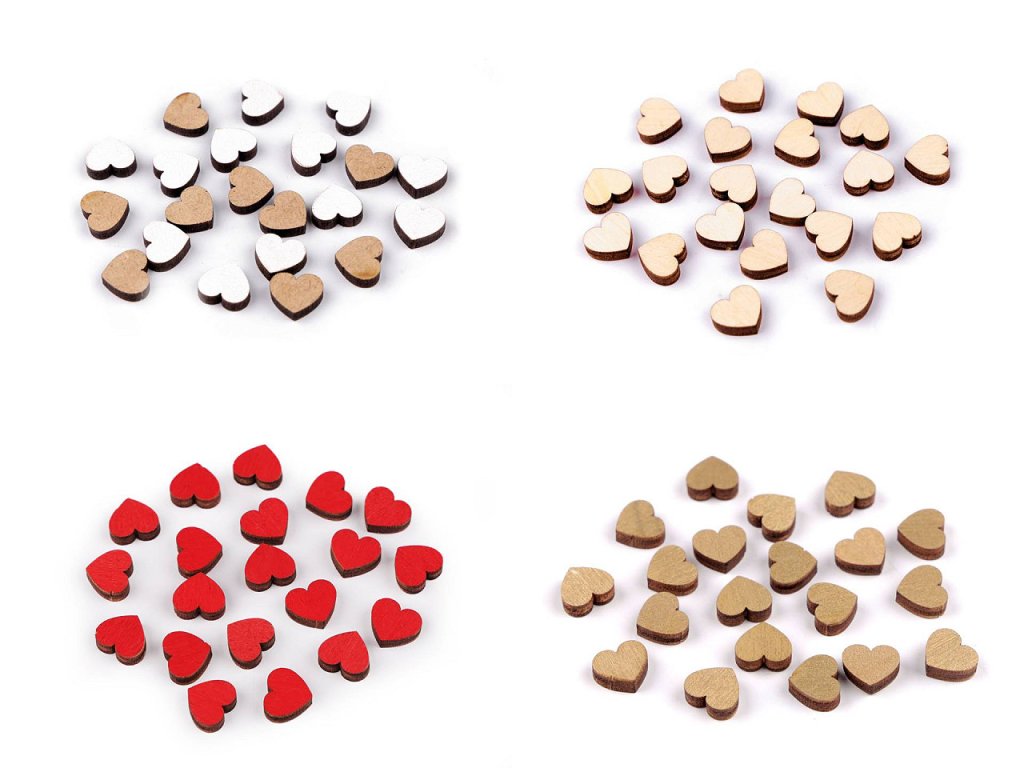 Mini dřevěná srdíčka využijete ve scrapbookingu k ozdobení přáníček, diářů, alb, jmenovek, krabiček apod. Vyniknou jako svatební i valentýnská dekorace. Jsou perfektní k výrobě voniček. Využijete je i na zdobení čelenek apod.