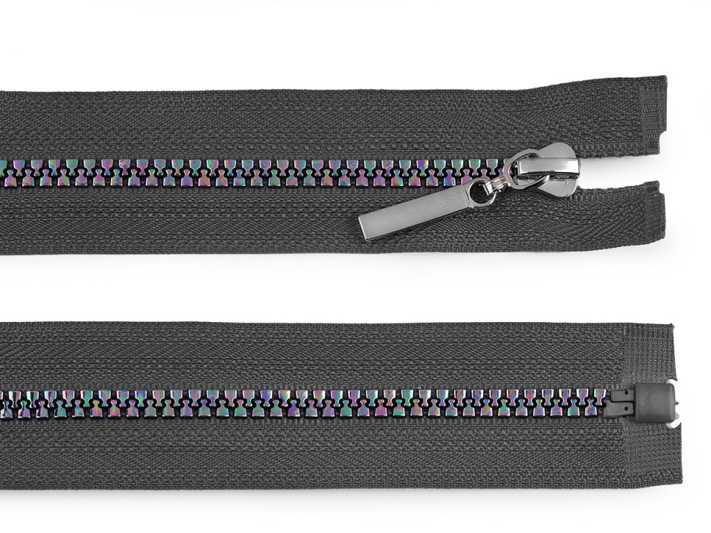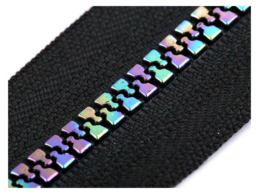 Dělitelný kostěný zip vás zaujme svým duhovým efektem, který povýší vaše oblečení na nevšední. Zip využijete na bundy, kabáty, mikiny, svetry, apod.