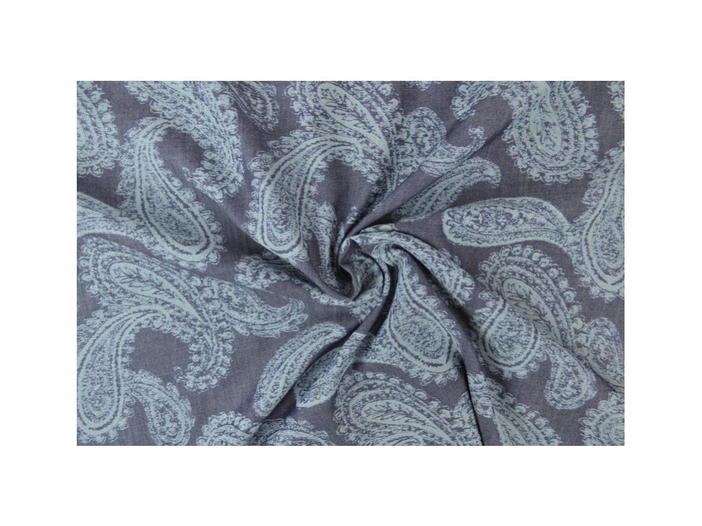 Džínsovina praná košeľová kašmírový vzor na modrej