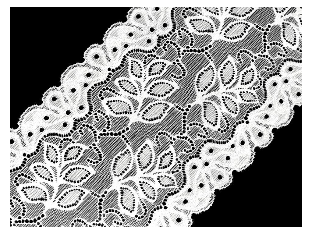 Elastickou krajku zdobí motiv lístků. Vyniká precizním zpracováním.