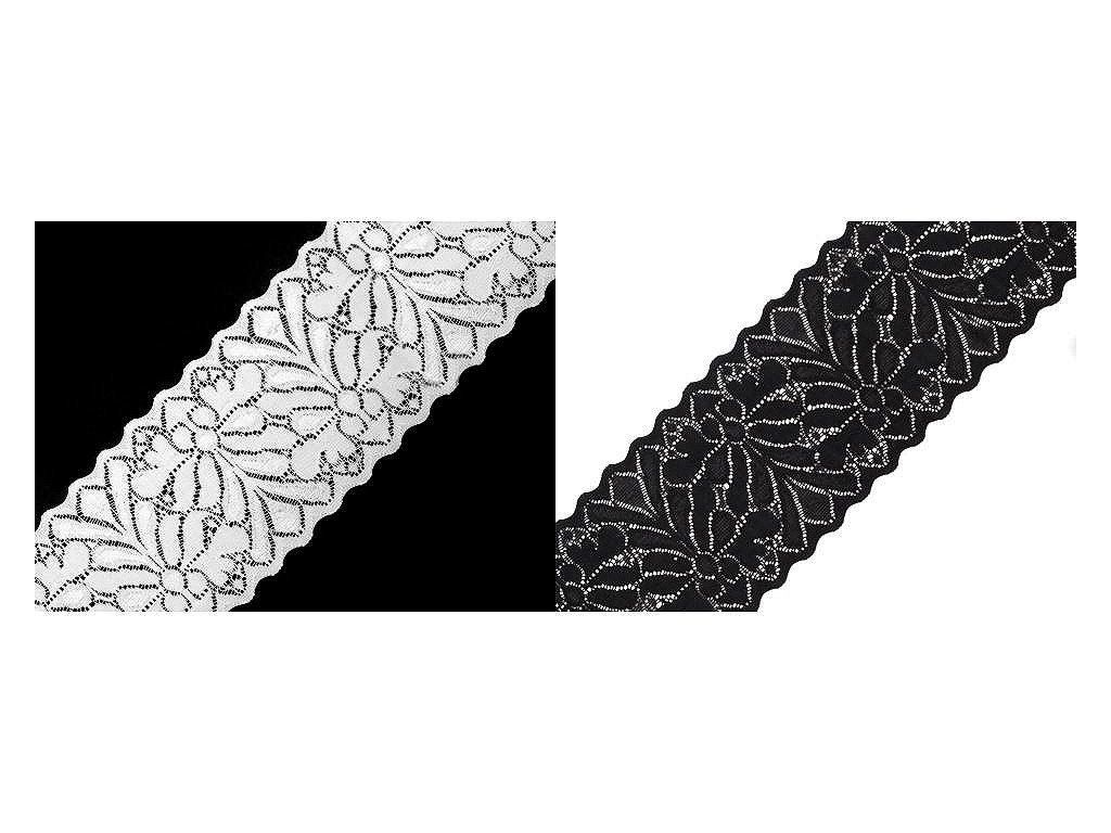 Použití: Díky vysoké elasticitě je krajka vhodná na ozdobení spodního prádla, punčoch, halenek, šatů apod.