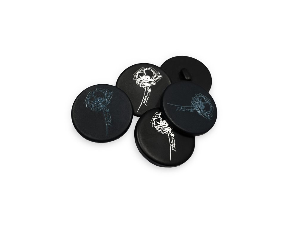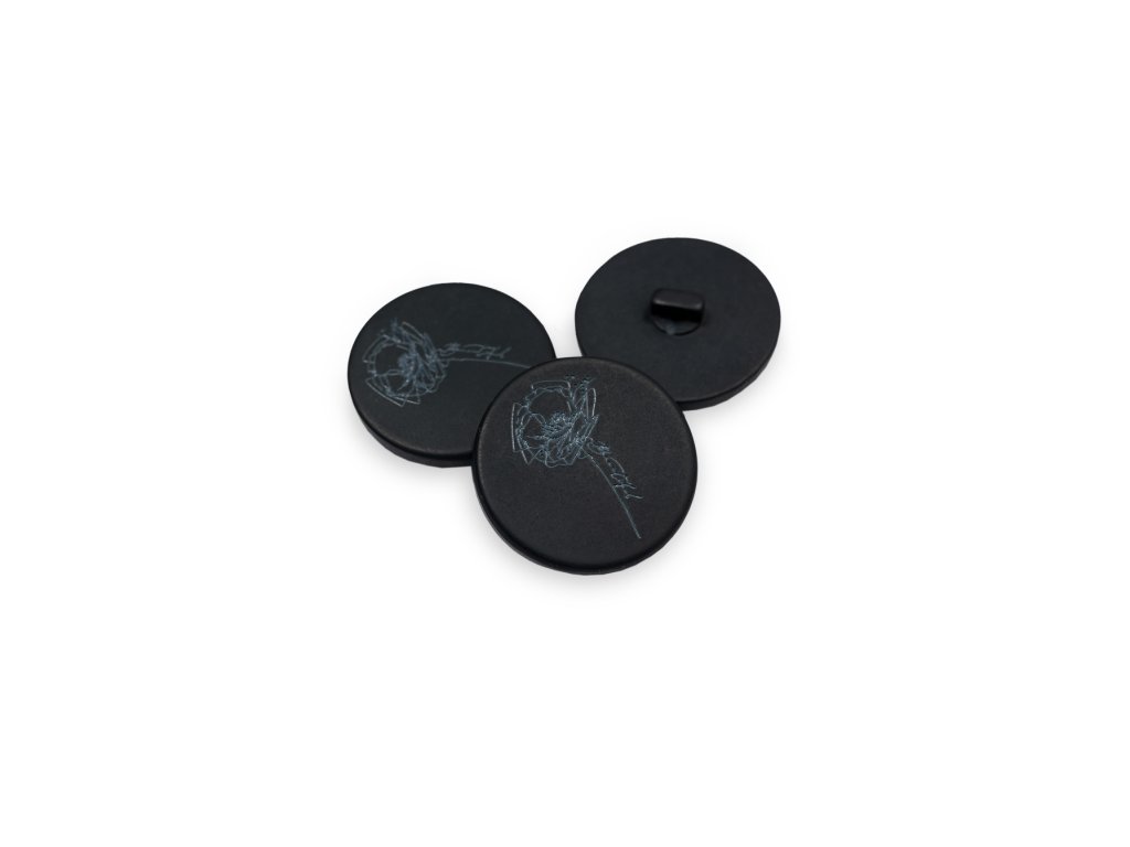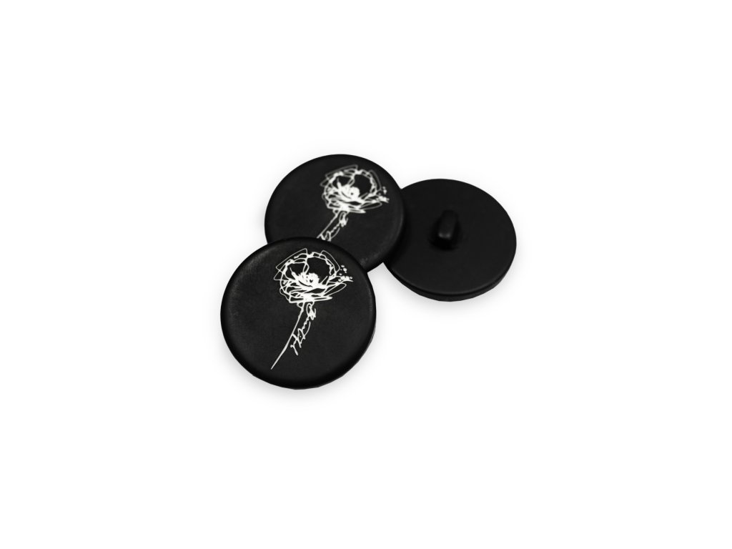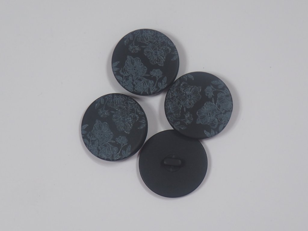 Knoflík ozdobný černý s květy s krčkem průměr 30 mm