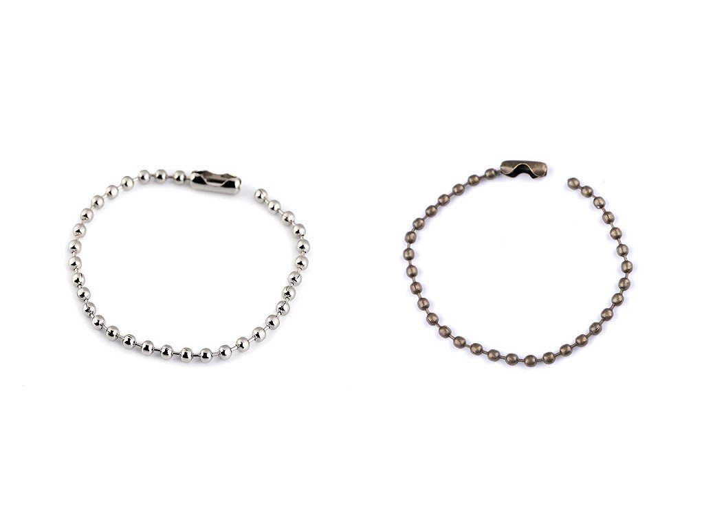 Farebné guličkové retiazky sú vhodné na pripevnenie príveskov na kabelky, tašky či ako pútko na kabáty, mikiny, bundy a pod. Môžete ich použiť aj ako visačku na odevy. Retiazku pripevníte zaháknutím guličky do očka. Guličky majú priemer 2 mm.