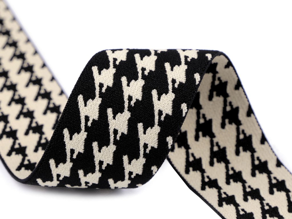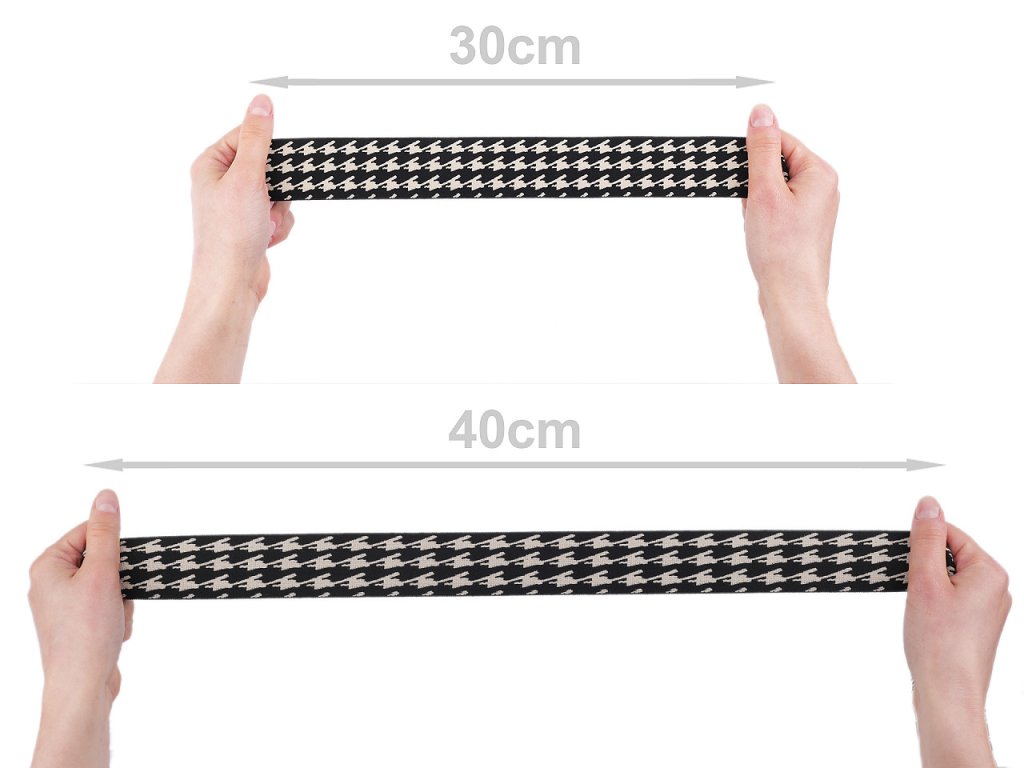 Hladká tkaná guma s kohúťou stopou je vyrobená z príjemného mäkkého materiálu. Motív je obojstranný. Využijete ju do pásov nohavíc, šiat, sukní aj na výrobu spodnej bielizne. Guma je jemná v ťahu.