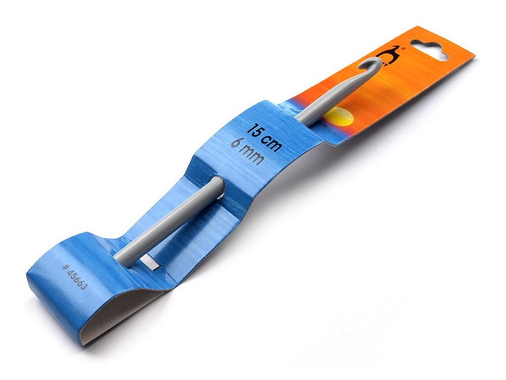 Háčik je určený na háčkovanie hrubšej vlny. Je vyrobený z kvalitného plastu.