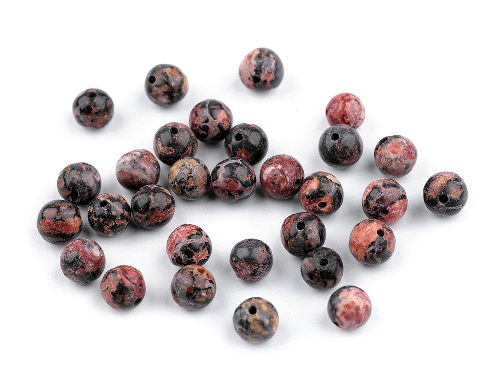 Minerální korálky z leopardího jaspisu jsou oblíbené především šperkaři pro svou nádhernou kresbou. Velikostí jsou ideální na výrobu jemnějších Buddhových náramků. Jsou oblíbené na techniku drátování, v kombinaci s drahými kovy, ale i s obyčejnými drátky. Skvěle vypadají i na jednoduchých návlekových šňůrách, které zajímavě ozvláštní.