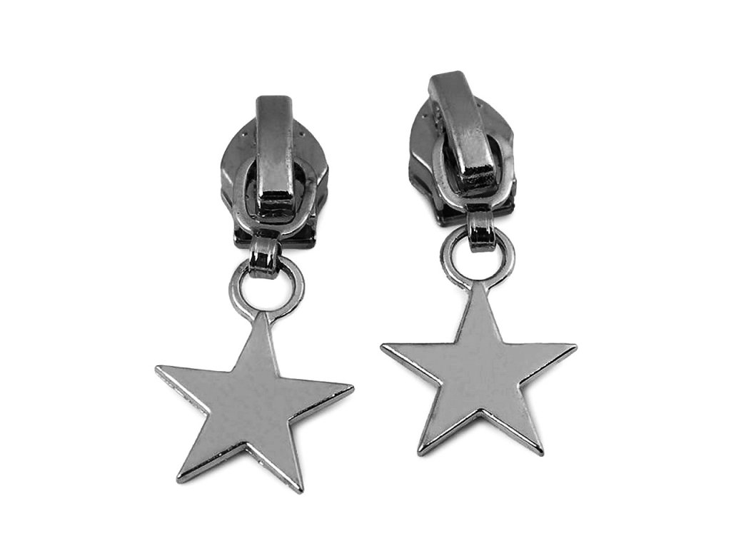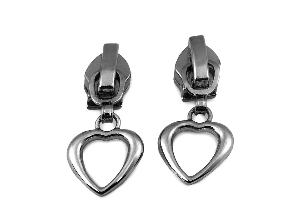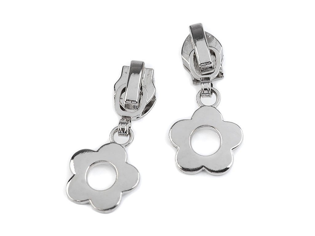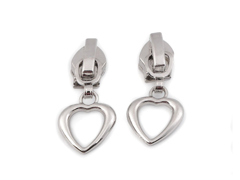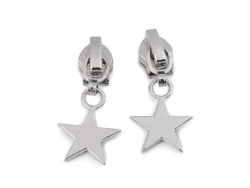 Kovový jezdec má táhlo s designem srdíčka, hvězdy nebo květu. Je určený ke spirálovým zipům, které najdete pod kódem 800963, 790304, 750503. Můžete ho využít nejen na oděvy, ale také na výrobu tašek a kabelek.