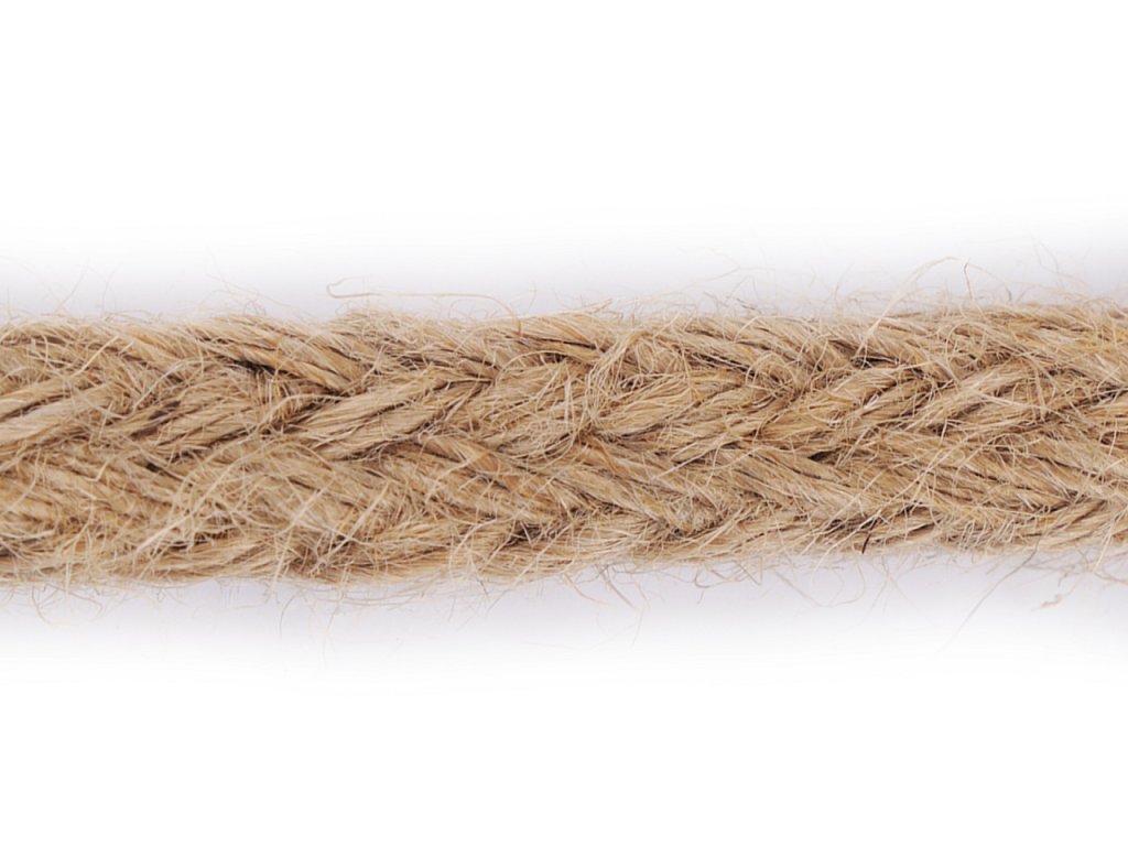 Splietaná jutová šnúra je pevná. Využijete ju na uchá na tašky, výrobu rôznych dekorácií či na zdobenie bytových doplnkov.
