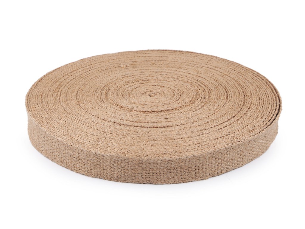 Pevný jutový popruh využijete v čalúníctve alebo ako dekoračný či funkčný materiál interiéru. Hodí sa tiež na výrobu úch na nákupné či plážové tašky.