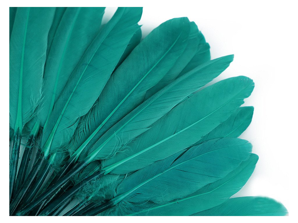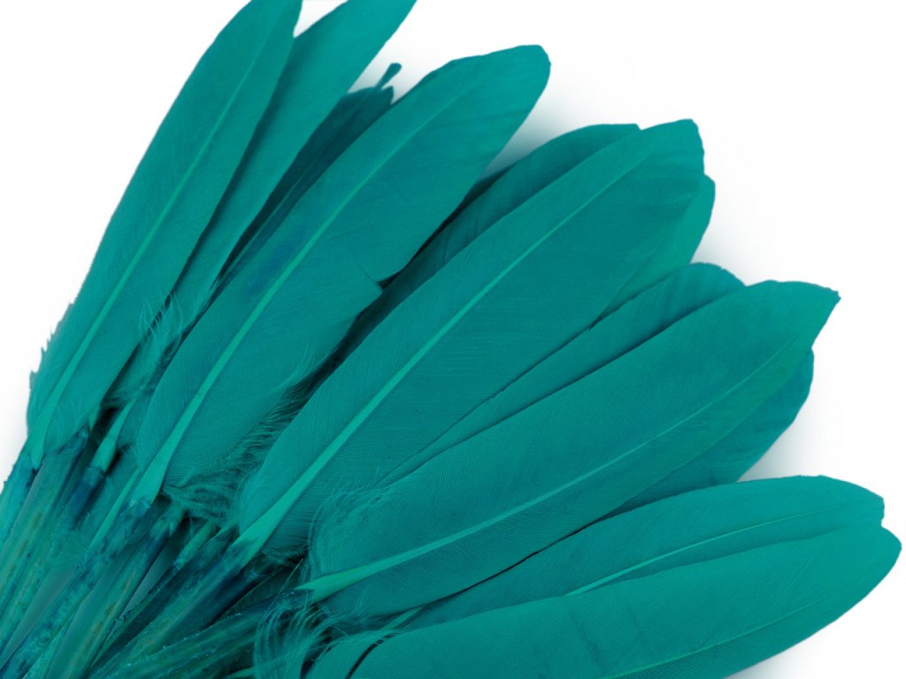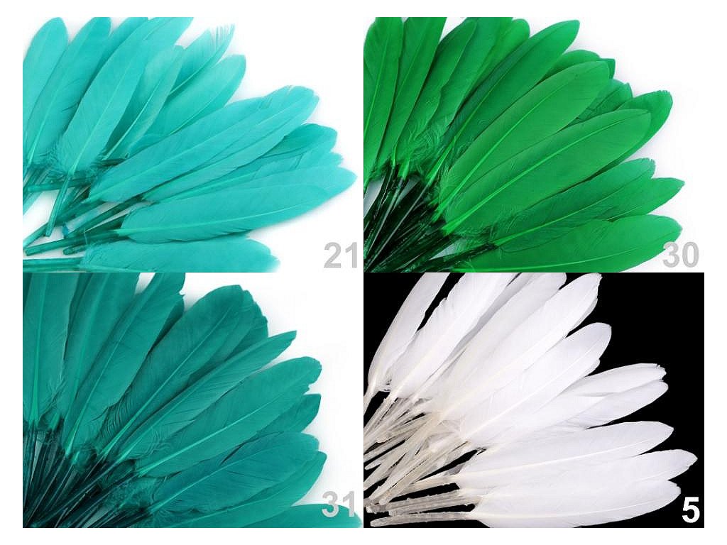 Kachní peří je uměle barvené (určeno pouze k dekoračním účelům, nebezpečí zabarvení). V jednom sáčku je 20 ks peří.