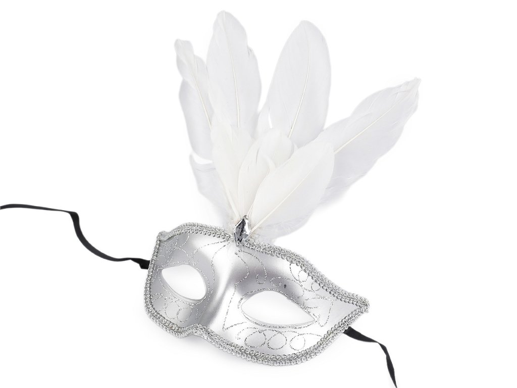 Karnevalová škraboška vám dodá tajemný a svůdný vzhled na večírcích, plesech, párty, karnevalu apod. Škraboška je místy pokrytá třpytivými glitry a doplněná broušeným kamenem a peřím.