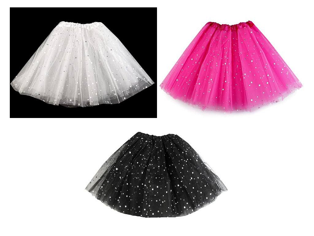 Karnevalovou sukýnku si zamilují všechny malé, ale i dospělé slečny. Skládá se ze tří tylových vrstev. Horní vrstva je bohatě pokrytá třpytivými flitry. Sukně má v pase gumičku, aby se mohla dobře přizpůsobit své nositelce.