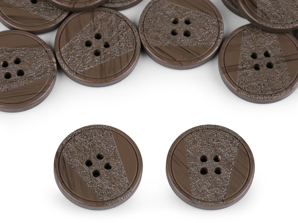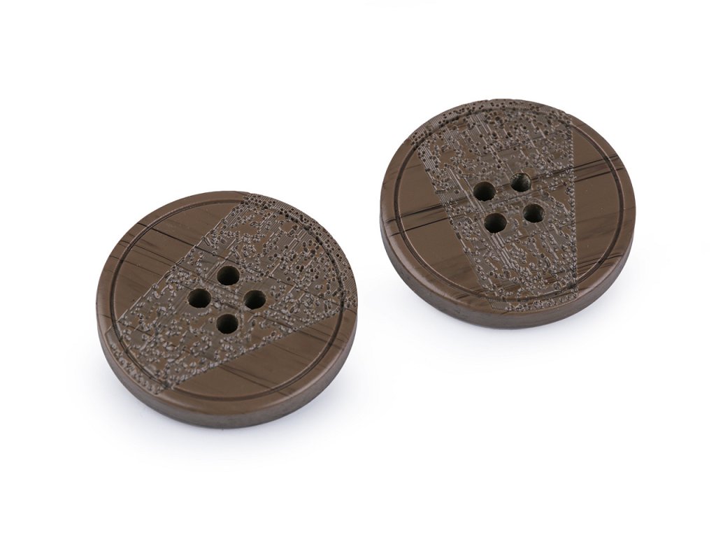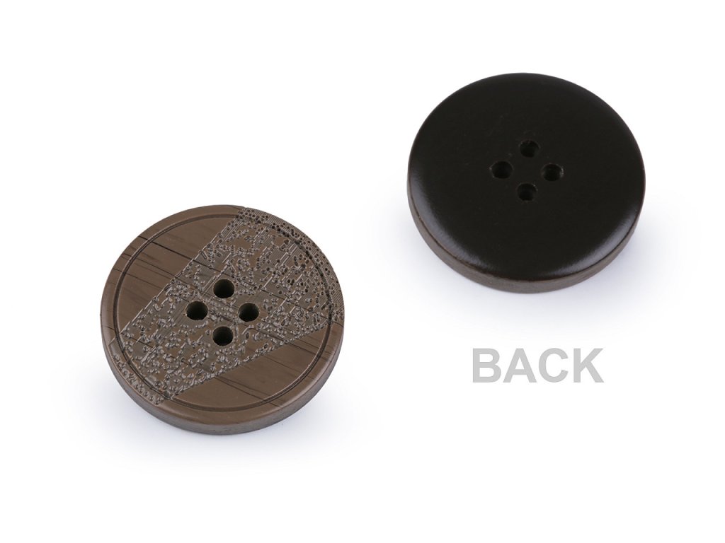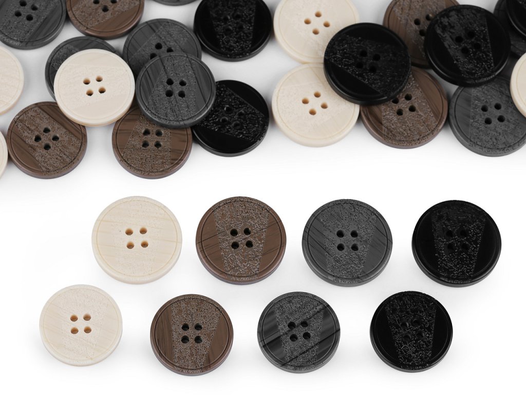 Čtyřdírkové knoflíky mají z části vygravírovaný povrch laserem. Vyniknou nejen na kabátech, ale i na svetrech, vestách apod.