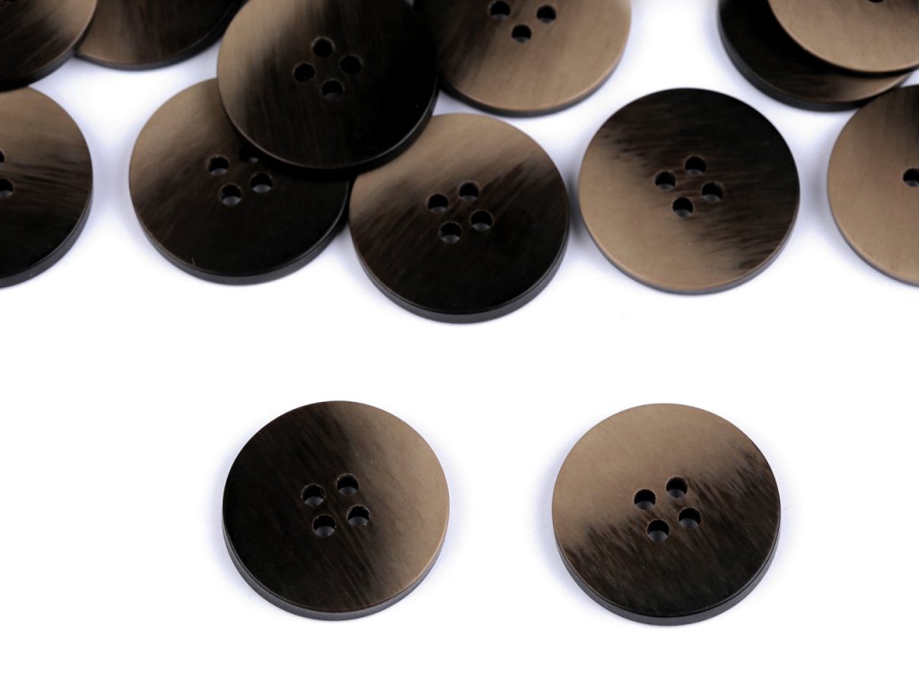 Čtyřdírkové knoflíky mají poutavý design díky jemnému barevnému ombré přechodu. Vyniknou nejen na kabátech, ale i na svetrech, vestách apod.