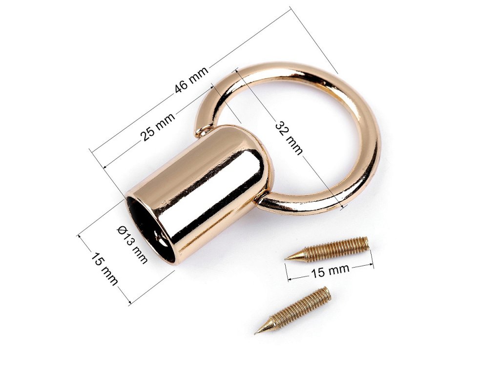 Koncovku s krúžkom využijete na pripevnenie uší ku kabelkám či taškám. Prilepíte do nej koniec šnúry, ktorý následne zafixujete pomocou priložených skrutiek.