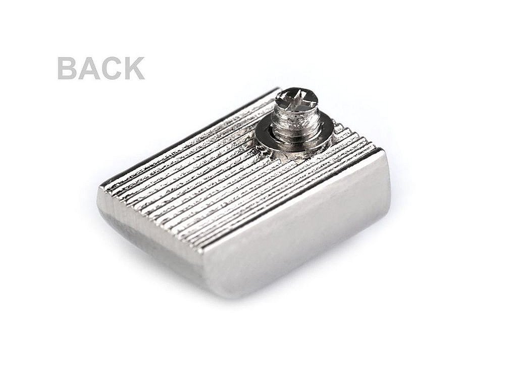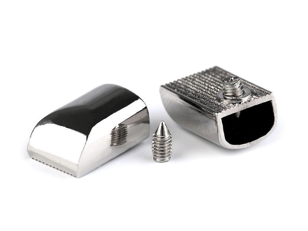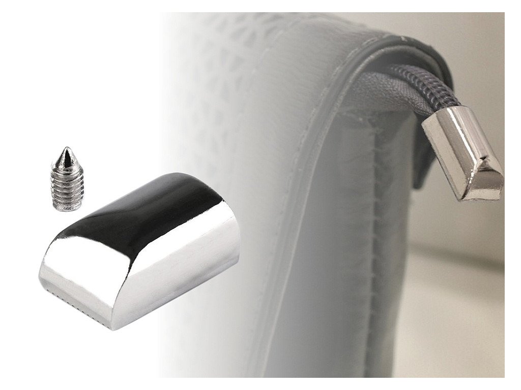 Elegantní kovovou koncovku využijete na zakončení zipu, převážně u kabelek nebo tašek. Schováte do ní nevzhledné konce a šroubkem je zespodu přišroubujete, aby koncovka nevypadla.