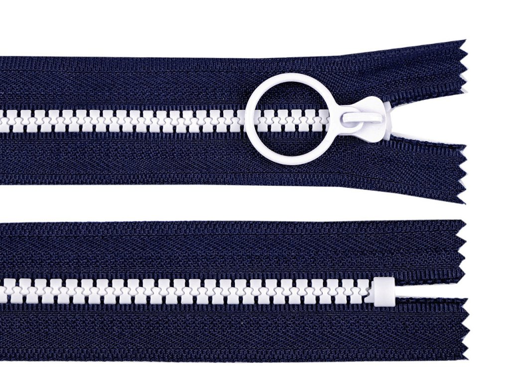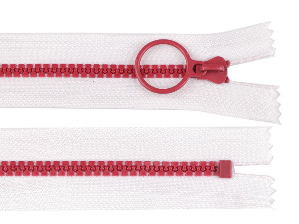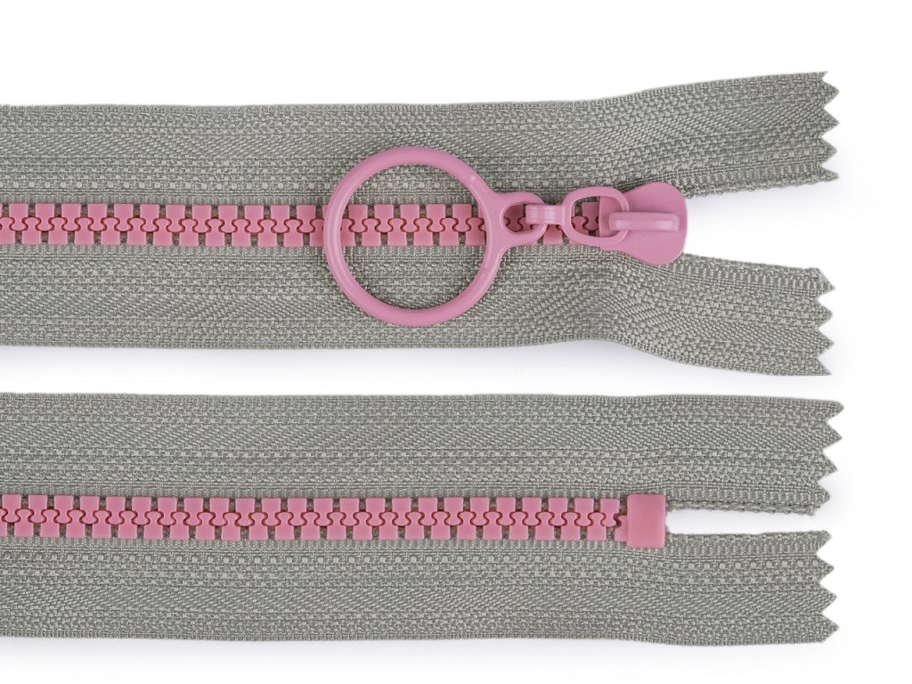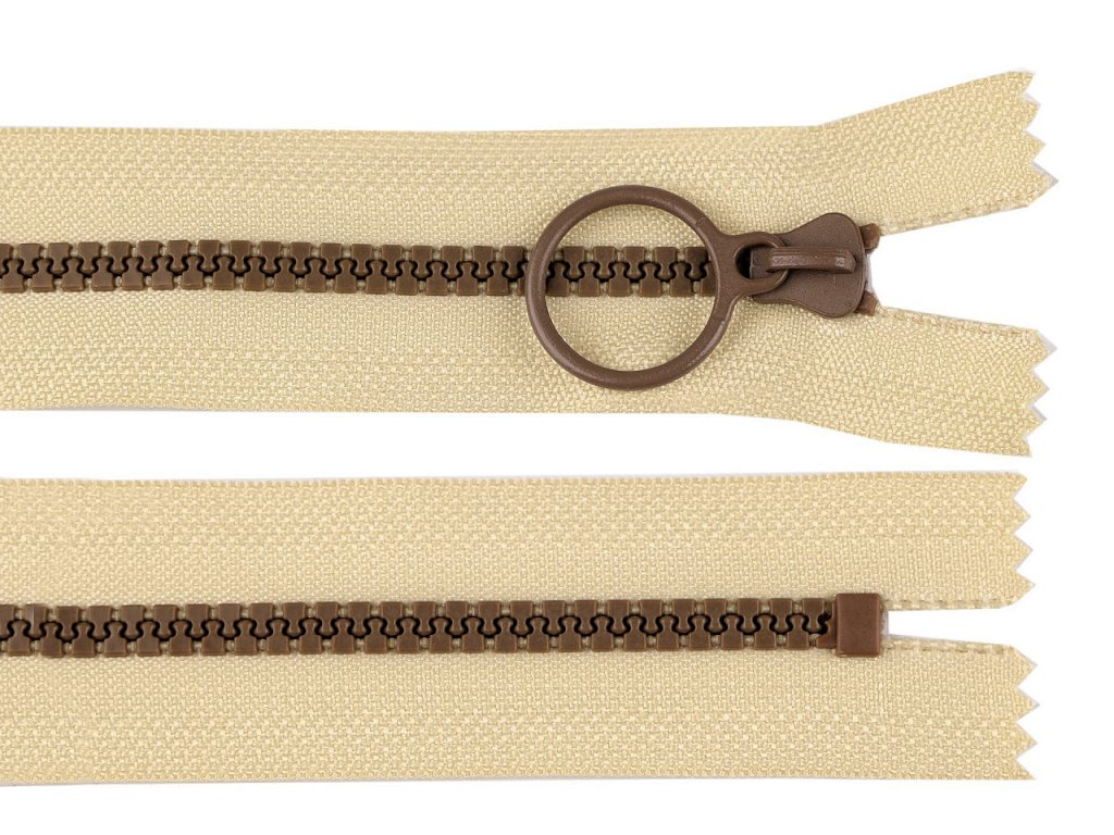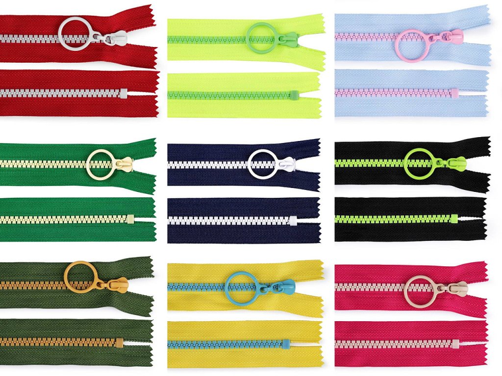 Nedělitelný kostěný zip je vhodný na mikiny, trička, menší tašky či pouzdra. Jezdec a zoubky vynikají jiným zabarvením než samotný zip.