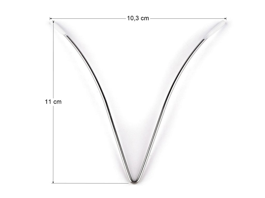 Kovová výztuž do výstřihu má tvar písmene V. Je mírně prohnutá, aby kopírovala hruď. Skvěle vyztuží živůtky, korzety, podprsenky, plavky i šaty. Profil výztuže je kulatý, konce jsou zaoblené pro pohodlné nošení.