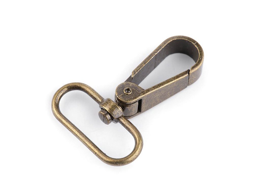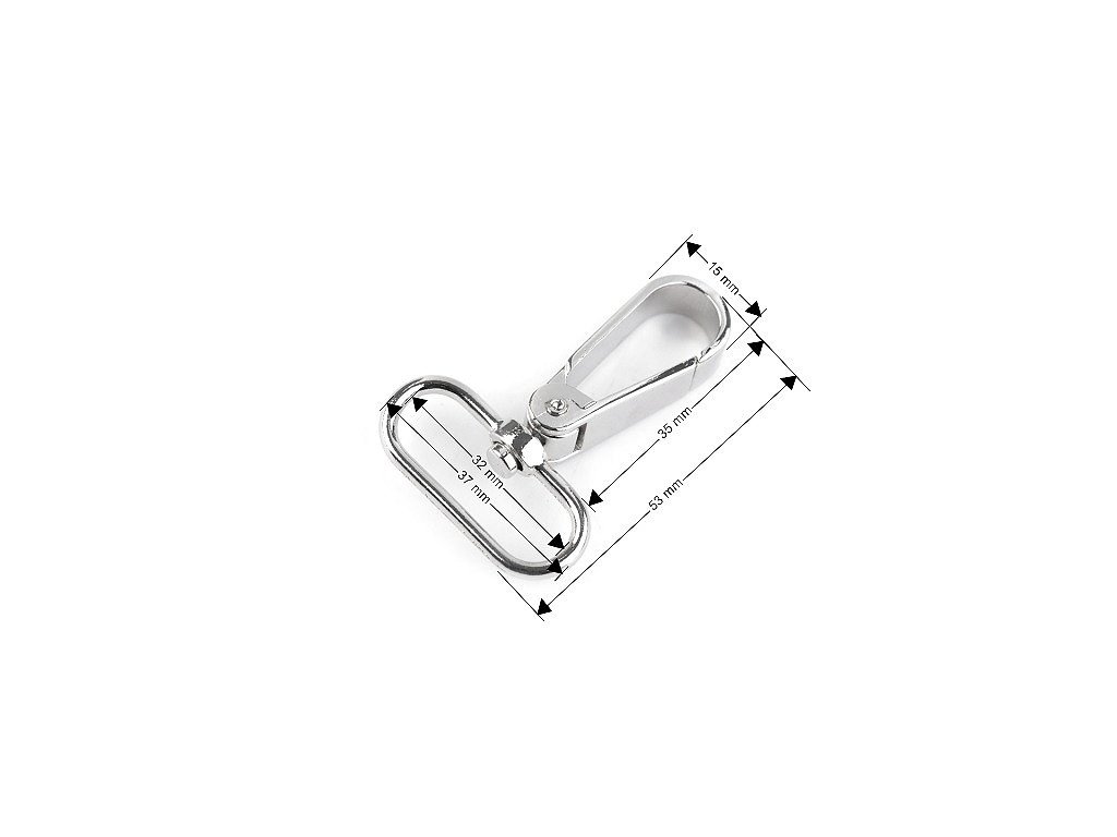 Kovovú karabinu využijete na upevnenie popruhov ku športovým taškám a kabelkám. Môžete ju použiť tiež na výrobu vodítok pre psov. Je otočná.
