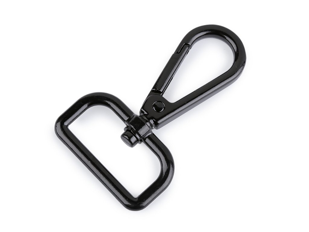 Kovovú karabínu využijete na upevnenie popruhov na tašky a kabelky. Môžete ju použiť taktiež na výrobu vodítok pre psy. Je otočná.