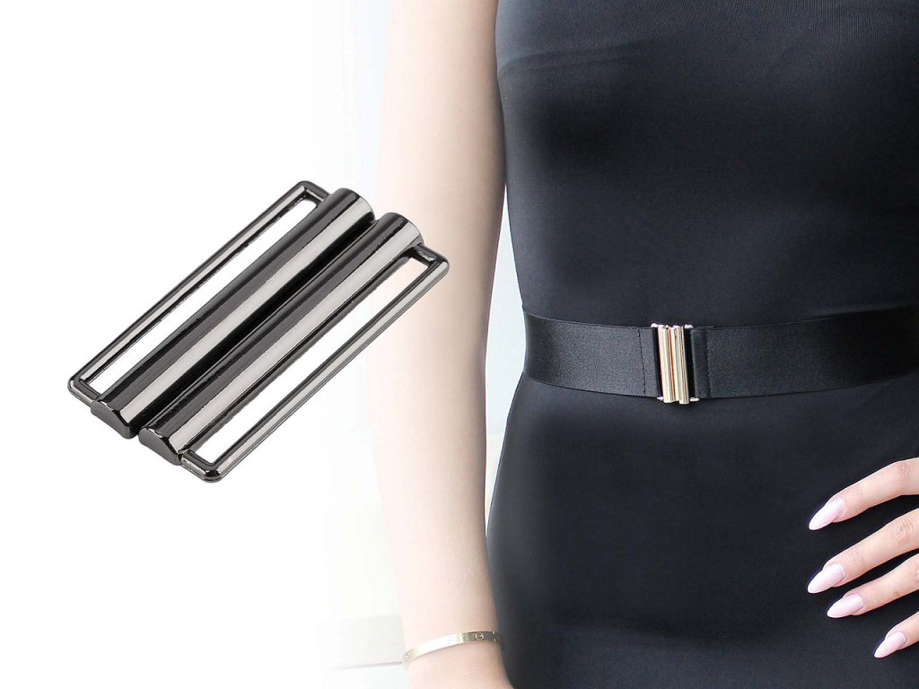 Minimalistická kovová spona se skládá ze dvou částí, které do sebe zaháknete. Využijete ji na výrobu opasků ke kabátům, bundám, kardiganům i šatům.