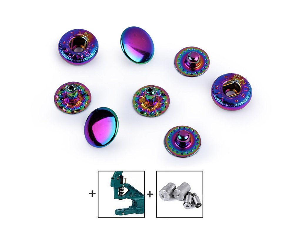 Kovové cvoky zdobí efektný holografický povrch , ktorý hádže zaujímavé odtiene. Využijete ich prevažne na koženú galantériu, tašky, kabelky a pod. Sú určené na spájanie stredne hrubých látok s hrúbkou 0,5 - 1,5 mm. Nitovanie sa vykonáva pistonom a lisom, ktorý nájdete pod kódom 790770 alebo 070241. Sada sa skladá zo 4 dielov.