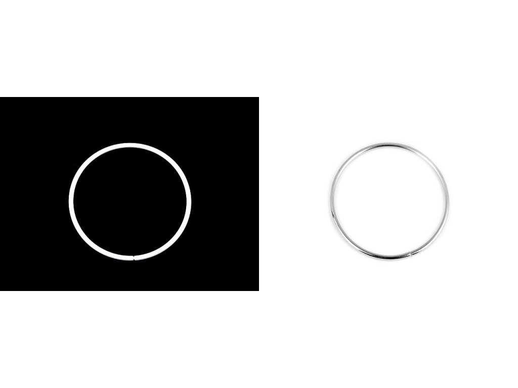 Kovový kruh můžete použít na výrobu malých lapačů snů a podobných dekorací. Je pevný, v místě spoje je svařený.