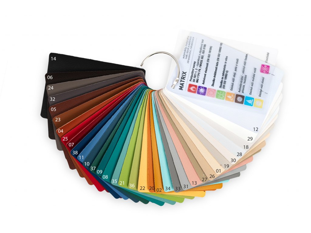 Koženka MATRIX je odolná, elastická, vhodná pro automobily, motocykly, lodě, lázně a wellness, zdravotnictví a rehabilitace.
