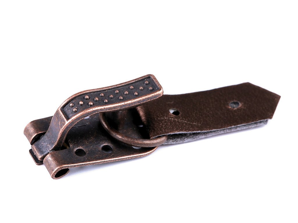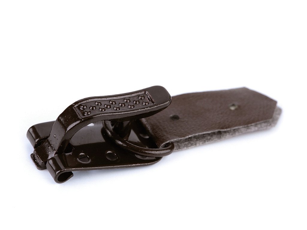 Kožuchová spona je vyrobená z kvalitného kovu a Eko kože. Skladá sa z dvoch častí, ktoré sa prišívajú. Spona je ideálnym doplnkom nie iba kouchov, ale i iných odevov. Môžete s ňou oživiť napríklad vesty, sukne alebo šaty.