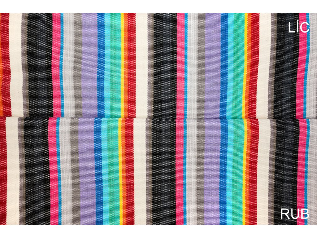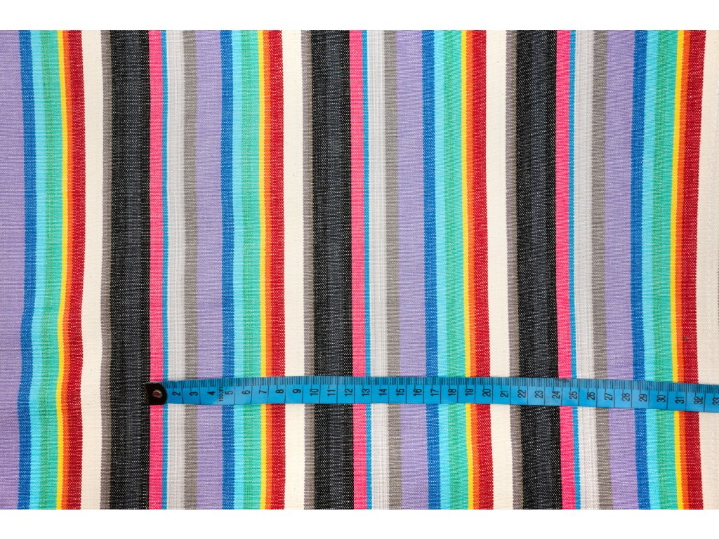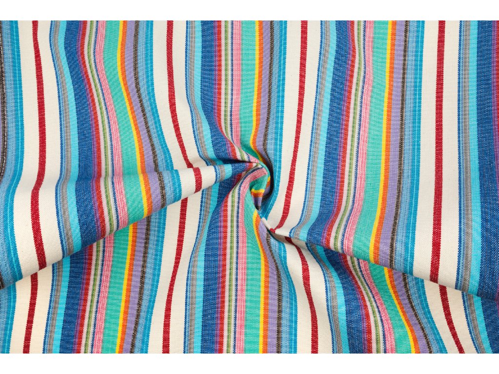 Tkanina má spevnený okraj, ktorý je obšitý, takže nedochádza k jeho štepeniu. Látka je vhodná na ležadlá, podsedáky, rybárske stoličky, záhradné kreslá. Tkanina je vďaka materiálovému zloženiu, respektíve kombinácii bavlny s polypropylénovým vláknom veľmi pevná. Ani po dlhom sedení sa na vašom ležadle neobjaví "kapsa" tak, ako sa bežne vyskytuje napríklad pri 100 % bavlnených látok na ležadlá.