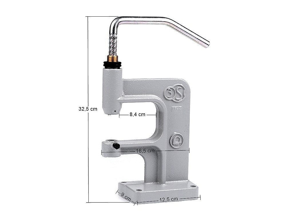 Tento lis slúži na nitovanie gombíkov, ako sú Auto - Moto, Roland Style, Roland Baby, Wuk, ďalej potom na nitovanie priechodiek. Tento lis je k pistónom so závitom M6 . Všetky tieto druhy nájdete v našej ponuke. K tomuto lisu je nutné si objednať sadu pistónov, ktoré sa dajú meniť, podľa druhu gombíkov alebo priechodiek.