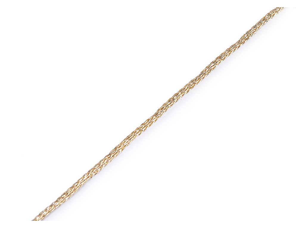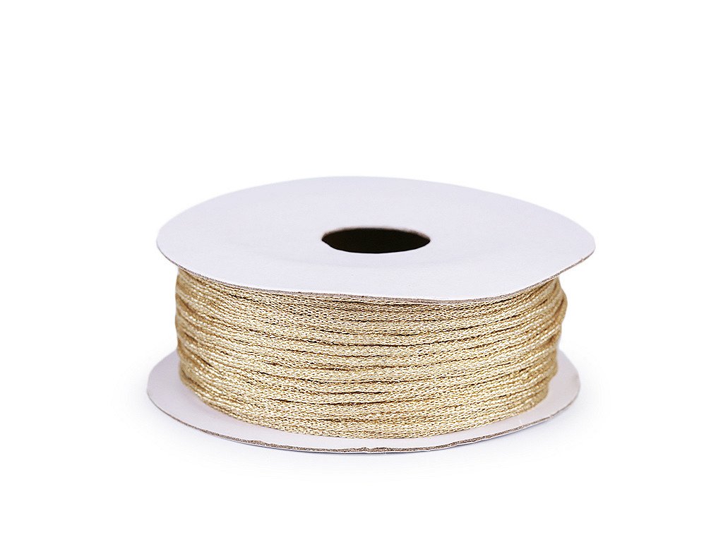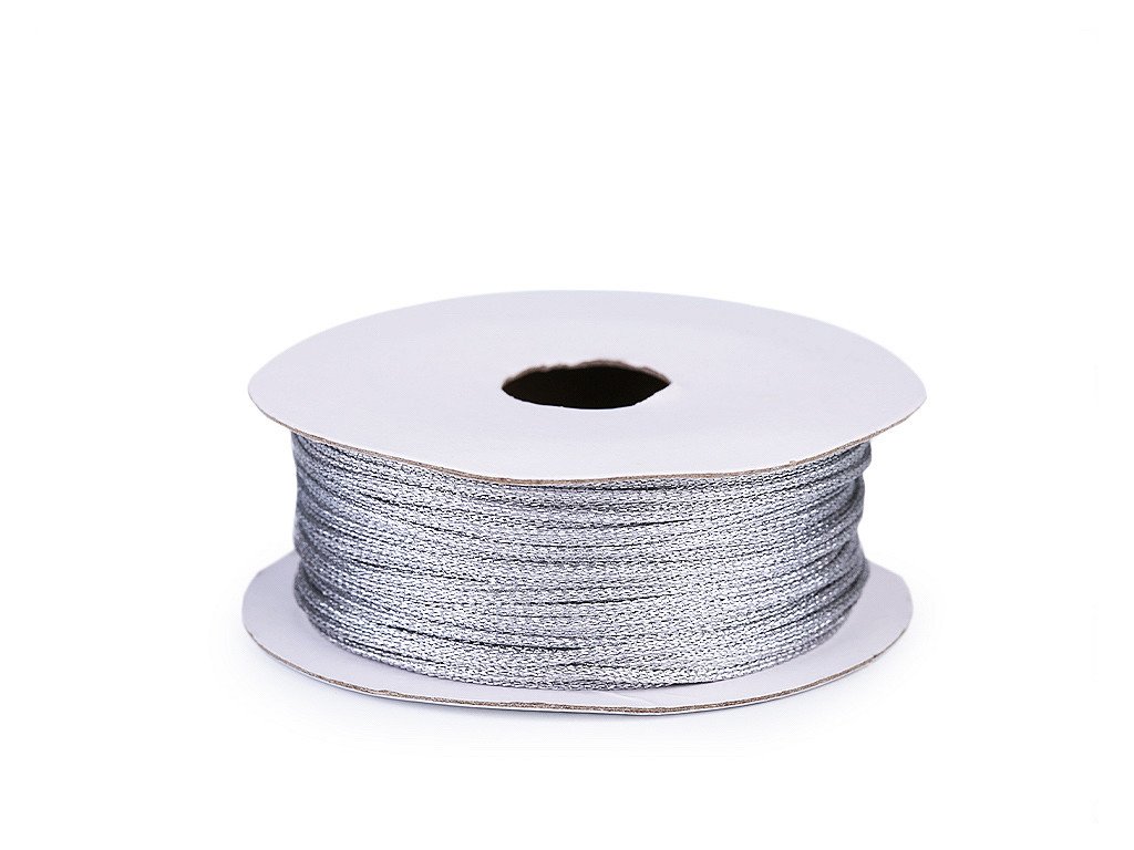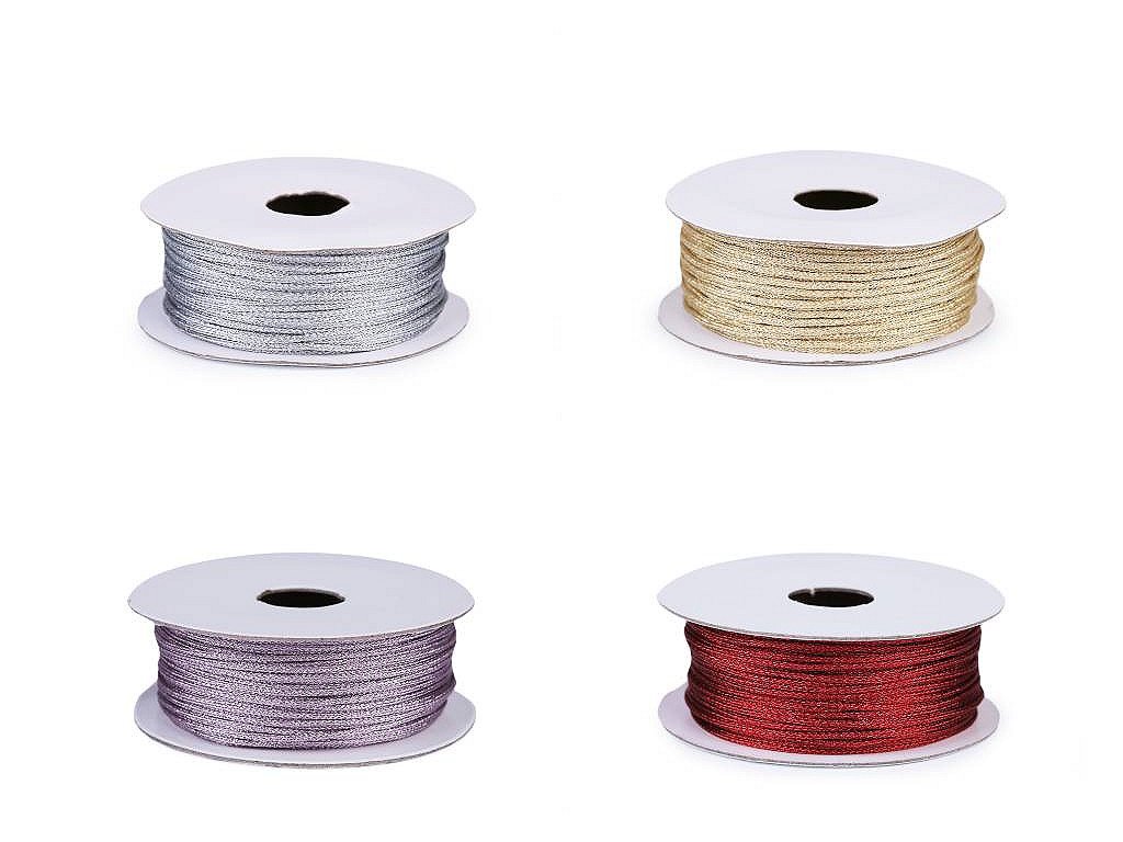 Tenká spletená šnúrka sa vďaka lurexovému vláknu elegantne trblieta. Skvele s ňou zabalíte a ozdobíte darčeky, využijete ju na rôzne dekoračné účely, alebo ju môžete použiť ako navliekací materiál pri výrobe náhrdelníkov, náramkov, a pod.