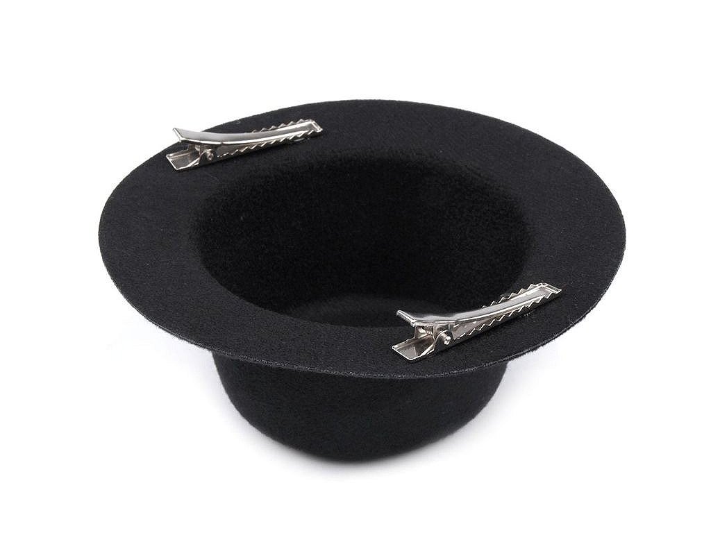Klobouček těchto rozměrů je vhodný jako základ pro tzv. "fascinátor" ozdoba do vlasů pro společenské akce, plesy, svatby, párty, karnevaly. Rozměry - lem šířka 24 mm, vnitřní průměr kloboučku 85 mm. Vnitřní lem je doplněn párem klipsen k přichycení do vlasů. Tento módní polotovar lze doplnit peříčky, flitry nebo zajímavou broží.