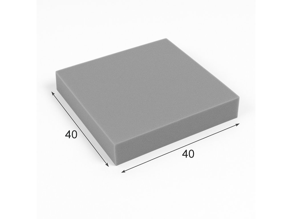 Molitanový sedák o rozměru 40x40 cm. Dostupný ve čtyřech variantách výšky: 2 cm, 3 cm, 4 cm a 5 cm.
