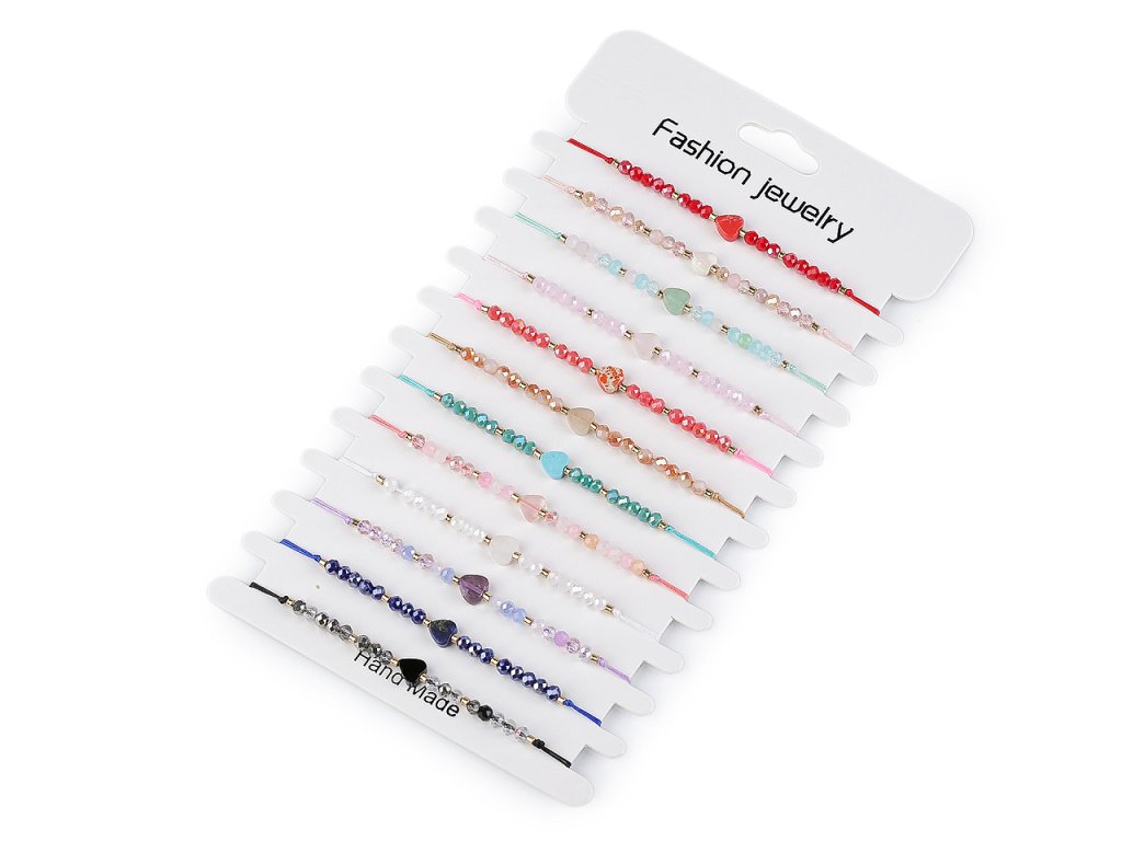 Náramky v mixu se prodávají jako sada 12 ks na papírové kartě k zavěšení.