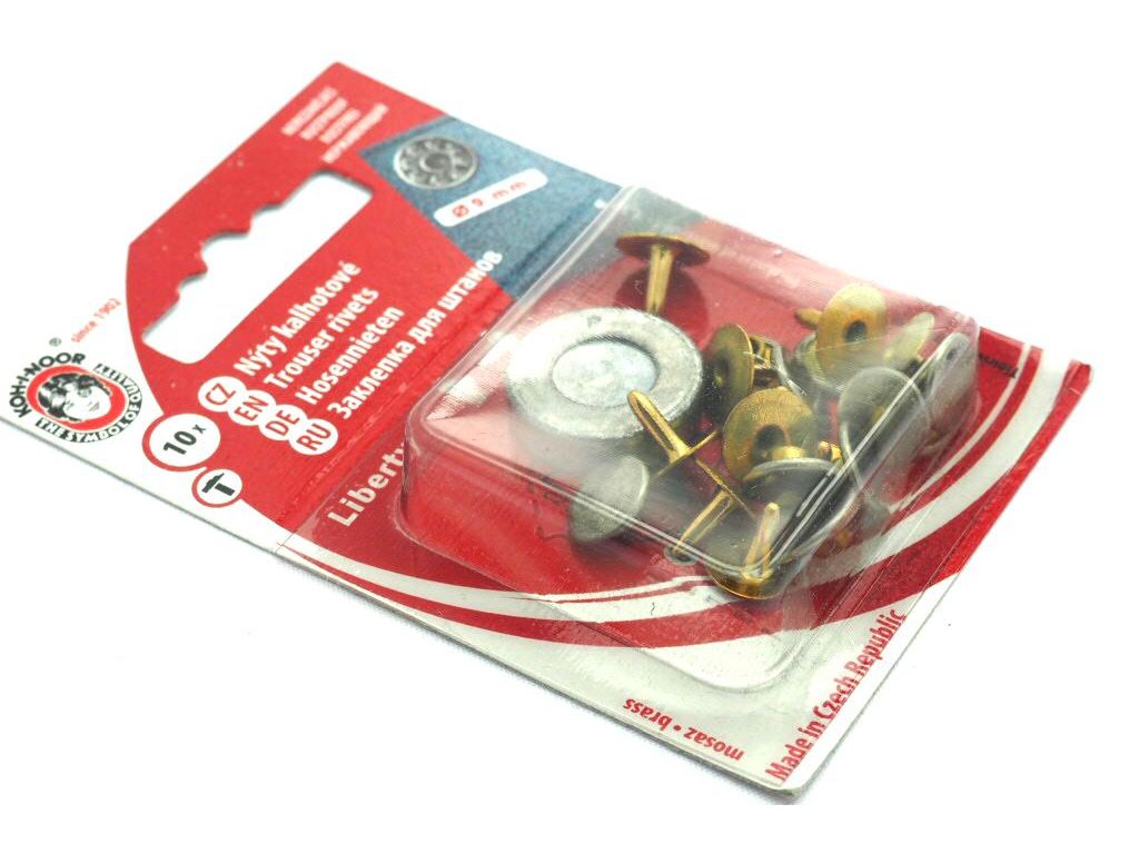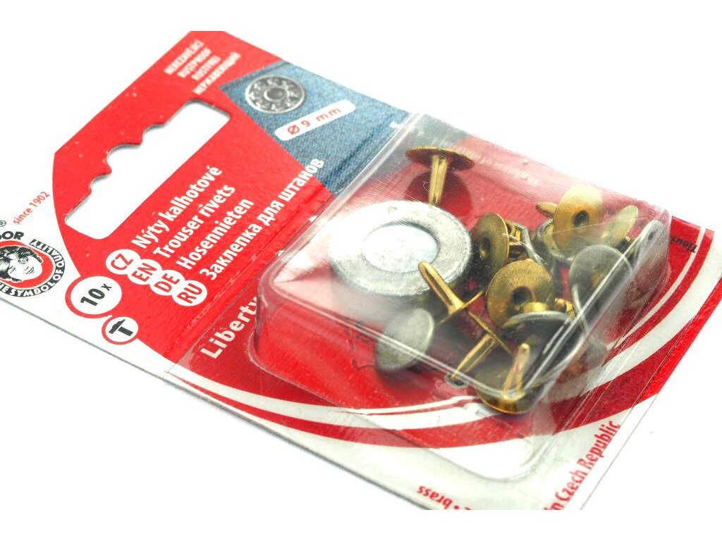 Kalhotové nýty, vel. 9,4 mm, barva : staronikl, 10 ks v balení , včetně nýtovacího přípravku.