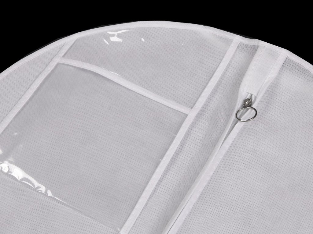 Díky jeho rozměrům ho využijete na dlouhé společenské šaty nebo svatební šaty. V horní části obalu je průstřih, do kterého pohodlně vložíte ramínko na zavěšení. V dolní části je obal sešitý.
