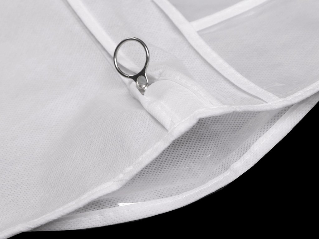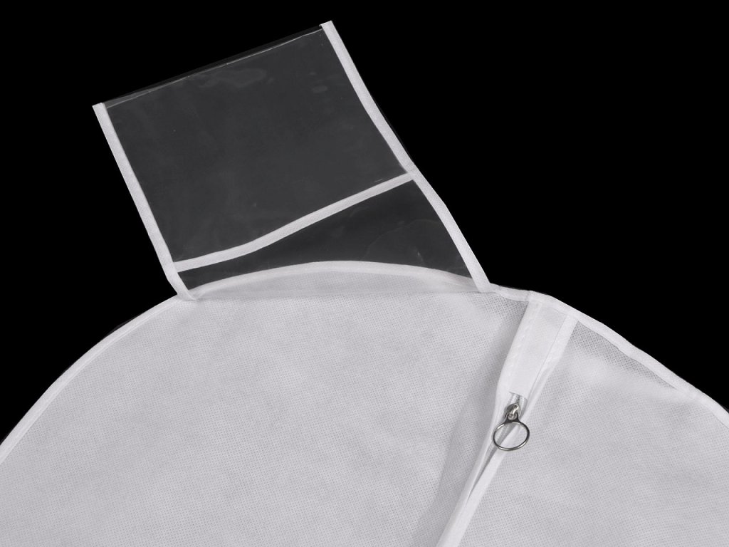 Obal na oděvy ochrání vaše oblečení při jakékoliv manipulaci. Je vyrobený z netkané textilie, zapíná se na zip. U ramene má průhlednou kapsičku (17 x 19 cm) na malé doplňky.