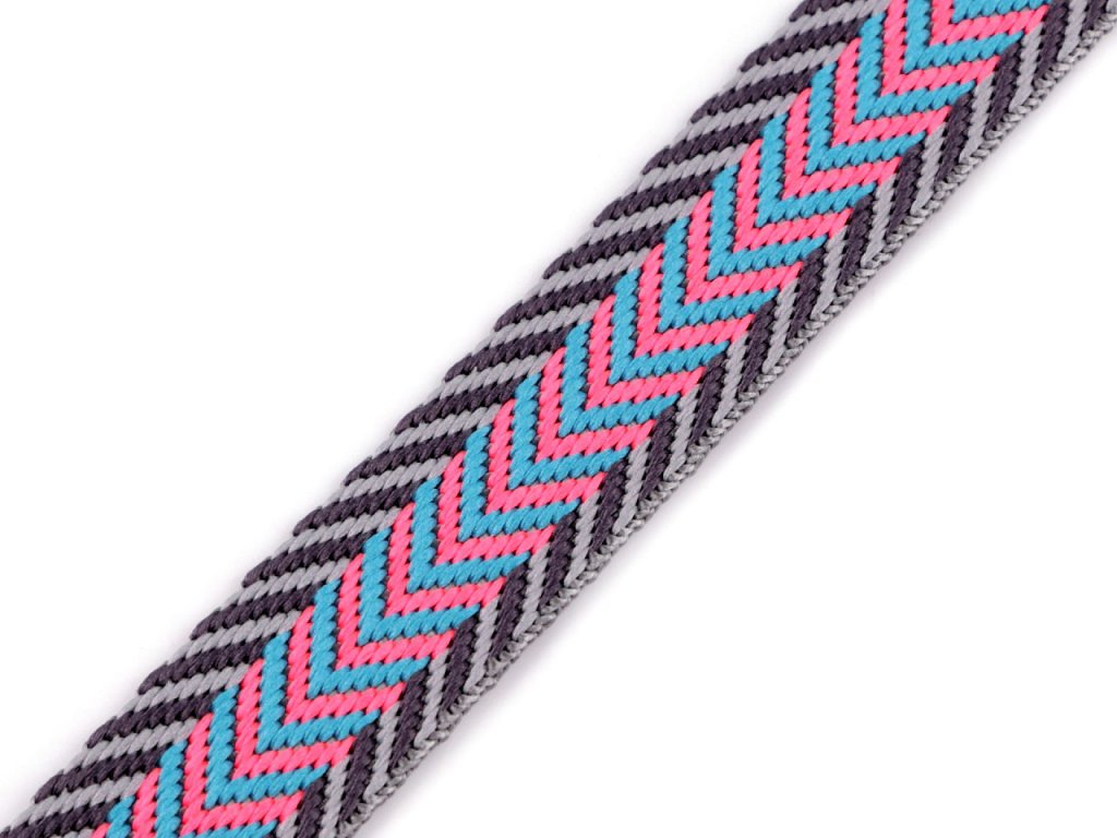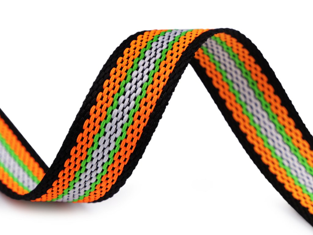 Efektne farebný popruh je pevný a obojstranný. Využijete ho ako ucho na batohy, tašky či kabelky. Je vhodný tiež na výplety nábytku, lehátok, saní, lemovania textilných výrobkov , na výrobu vodítok a pod.