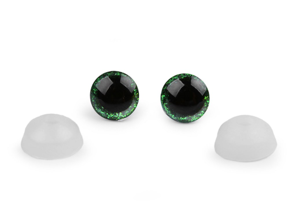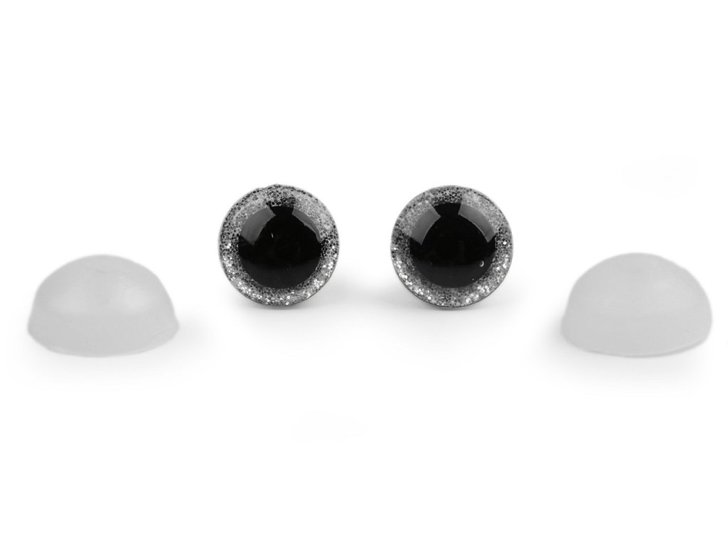 Polokulaté oči s glitrovou duhovkou se nádherně třpytí. Umocní výraz vašich nejrůznějších postaviček či zvířátek. Mají závit, na který se nasadí duhovka, následně se provleče materiálem, a z druhé strany se pak nacvakne pojistka, která oči bezpečně připevní na místo. Pokud nebudete chtít, aby se oči třpytily, nemusíte duhovku použít, v tom případě zůstane duhovka transparentní.