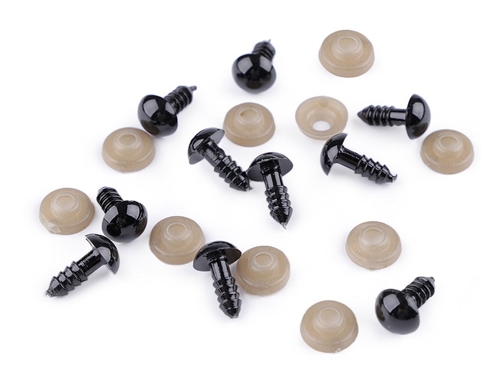 Polokulaté plastové očička využijete při tvorbě plyšových, háčkovaných, či jiným způsobem vyrobených postaviček nebo zvířátek. Pro pevné přichycení k materiálu mají očka vrut se závitem, z jehož druhé strany se přicvakne pojistka, čímž se očička bezpečně připevní na místo.
