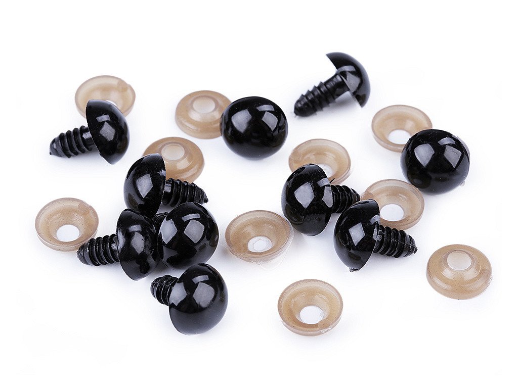 Polokulaté plastové oči využijete při výrobě nejrůznějších postaviček či zvířátek. Mají závit, který se provleče materiálem, a z jeho druhé strany se pak nacvakne pojistka, která oči bezpečně připevní na místo.