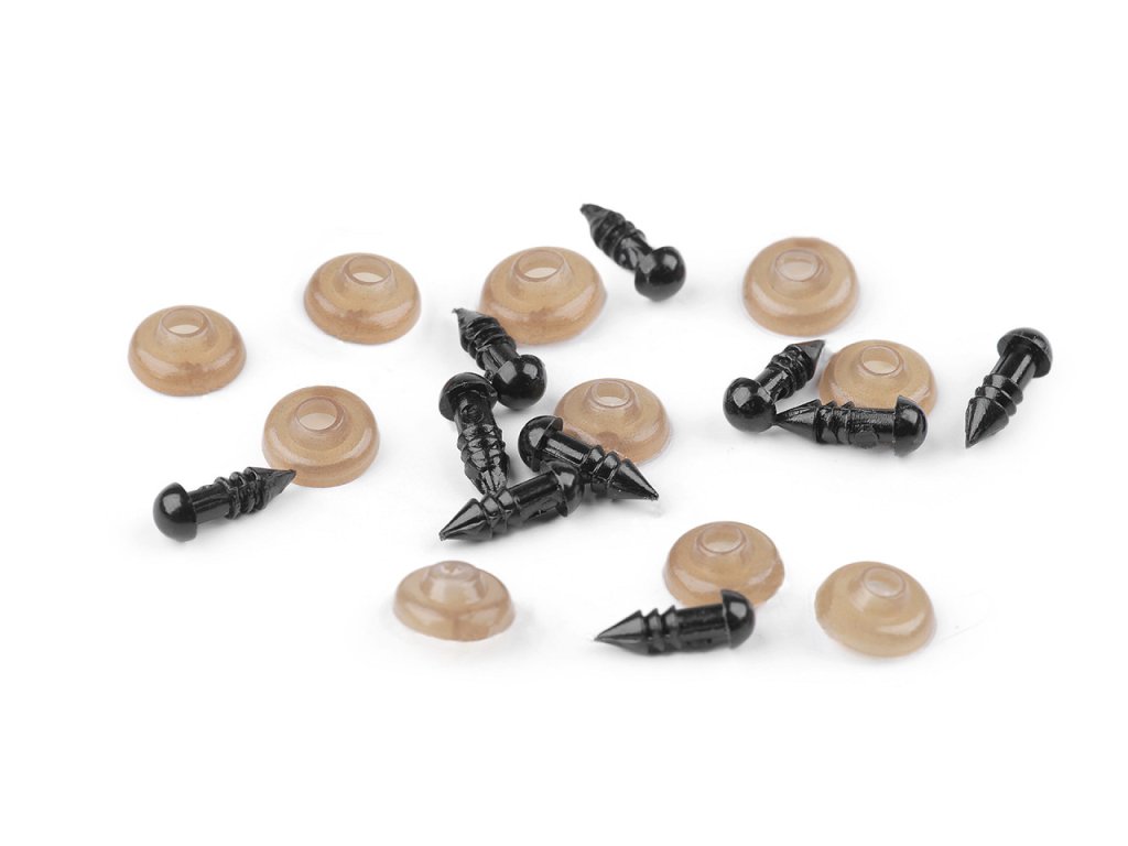 Polokulatá plastová mini očička využijete při výrobě nejrůznějších postaviček či zvířátek. Očka mají závit, který se provleče materiálem, a z jeho druhé strany se pak nacvakne pojistka, která oči bezpečně připevní na místo.