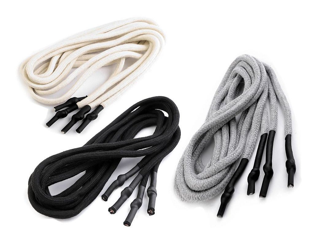 Guľatá šnúrka vám usnadní prácu, pretože je už vybavená koncovkami, ktoré sú vyrobené z mäkkého plastu.