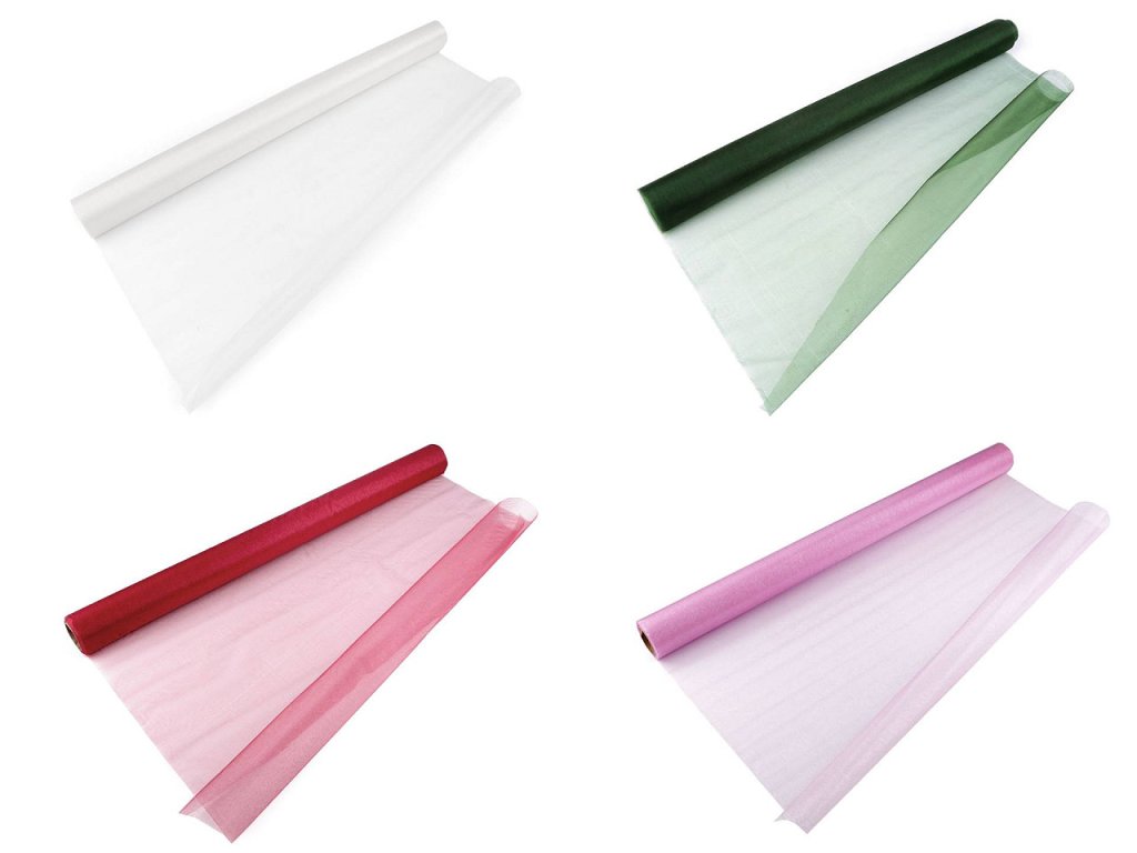 Organza působí díky svému jemnému lesku slavnostně a elegantně. Je vhodná k dekoračním účelům - na výzdobu slavnostní tabule, k ozdobení aut, květinových vazeb apod.