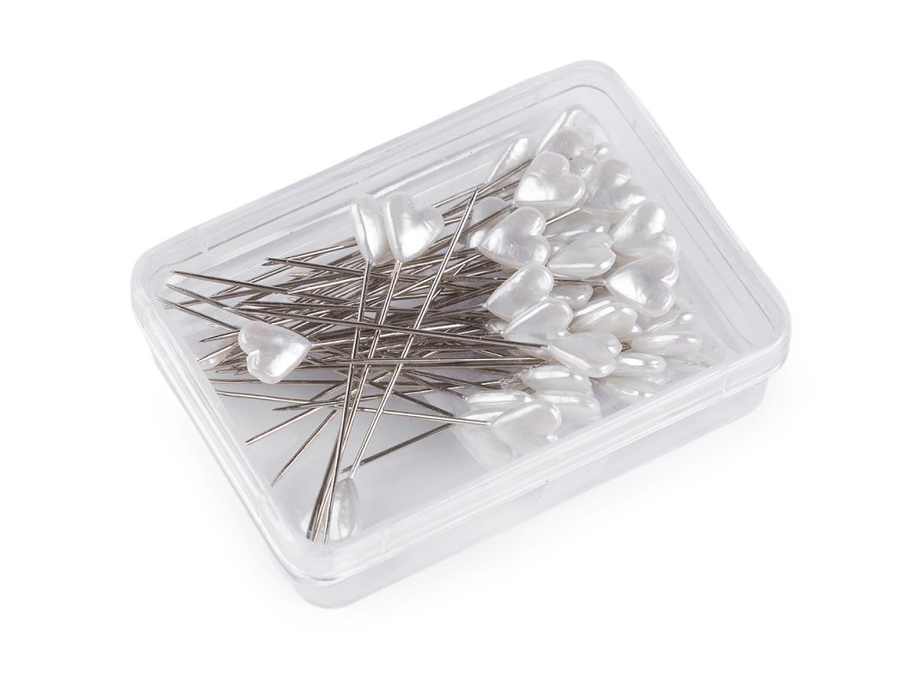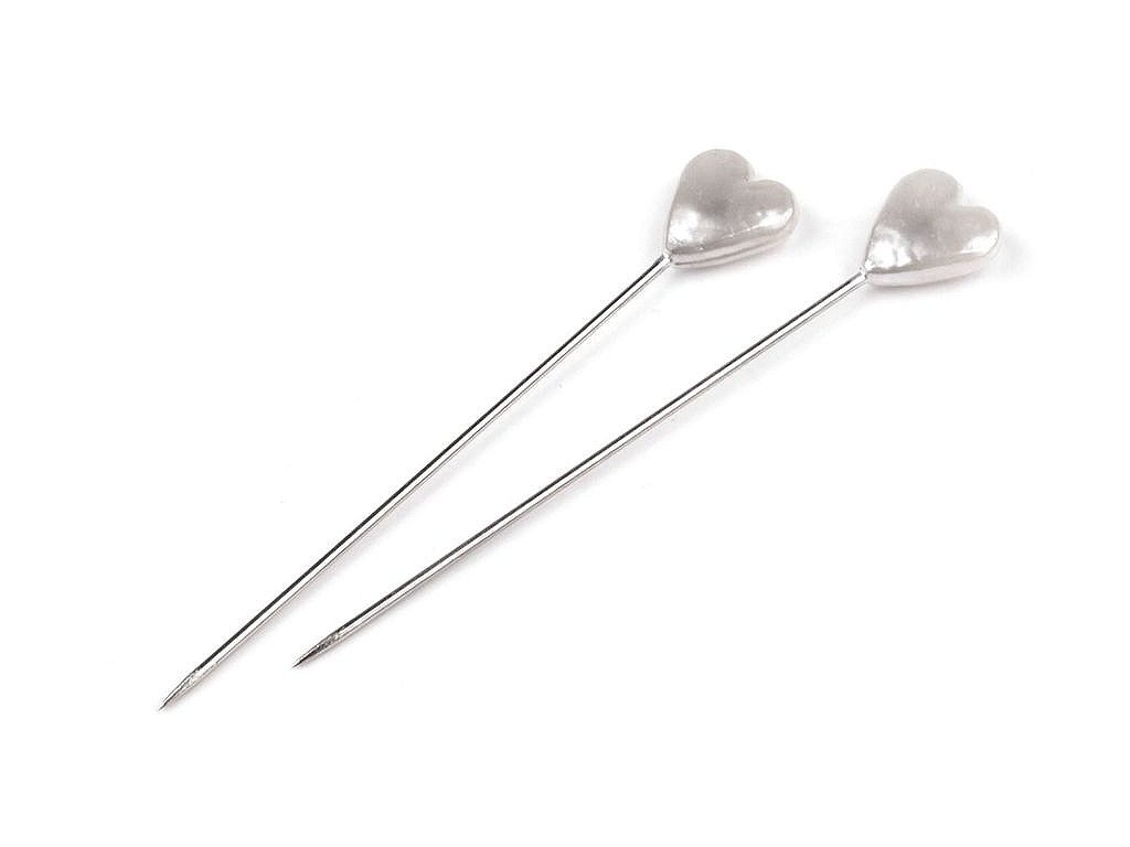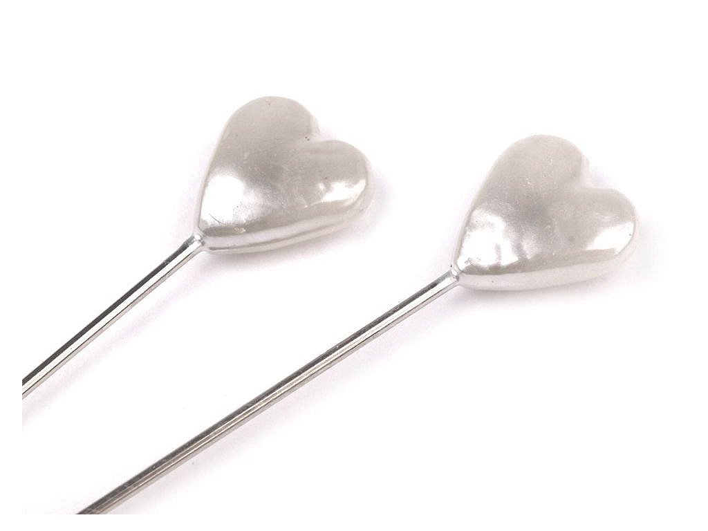 Dekorační špendlík má perleťovou hlavičku ve tvaru srdíčka. Slouží jako ozdoba k upevnění dekorace - např. do aranžmá živých květů. Balení obsahuje mix 6 barev (bílá, žlutá, růžová, červená, zelená sv. a tyrkysová).
