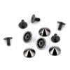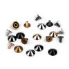 Skrutkovacie hroty budú ozdobou každej kabelky, listovej kabelky , odevov, kožených búnd i topánok. Skladajú sa z dvoch častí , ktoré do seba jednoducho zaskrutkujete. Môžete ich použiť aj ako nožičky na kabelky. Dĺžka po zaskrutkovaní oboch častí je 9 mm. Hrot je vhodný pre látky s hrúbkou 2 mm.