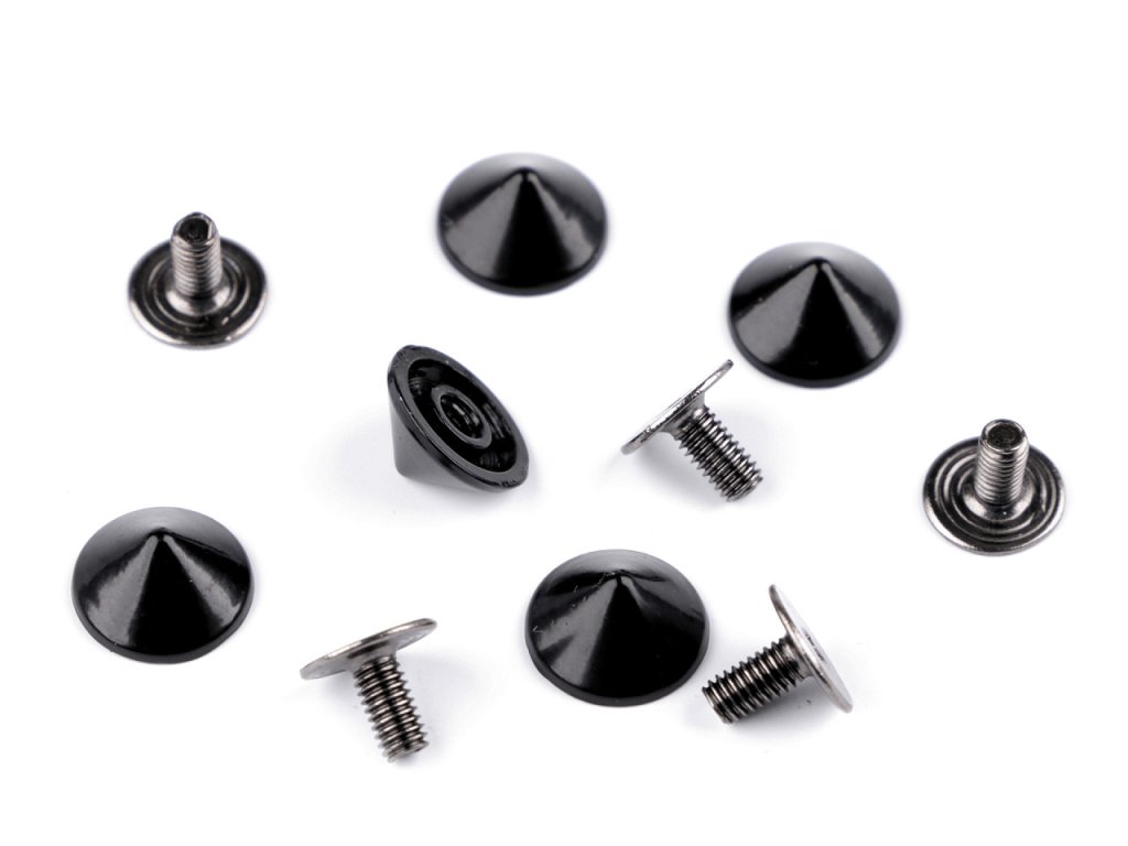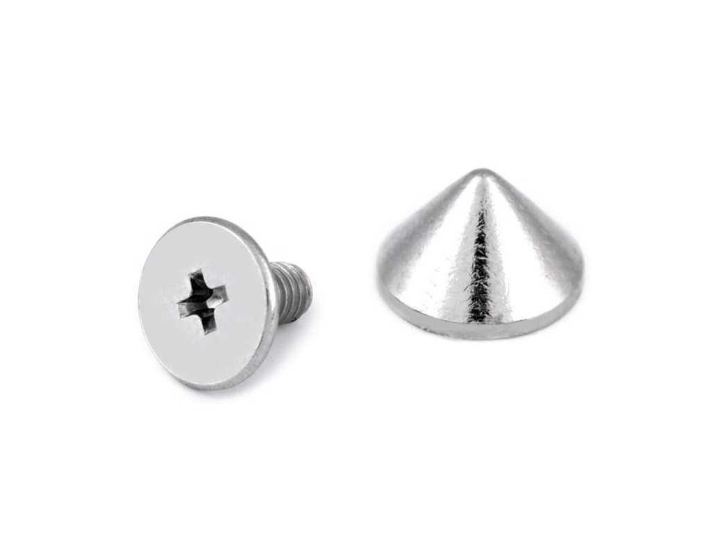 Skrutkovacie hroty budú ozdobou každej kabelky, listovej kabelky , odevov, kožených búnd i topánok. Skladajú sa z dvoch častí , ktoré do seba jednoducho zaskrutkujete. Môžete ich použiť aj ako nožičky na kabelky. Dĺžka po zaskrutkovaní oboch častí je 9 mm. Hrot je vhodný pre látky s hrúbkou 2 mm.