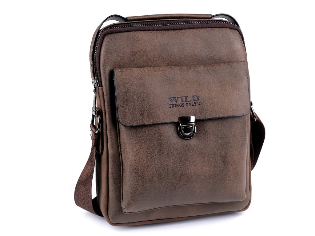 Kvalitní pánská taška je stylovým doplňkem každého muže. Díky eko kůže má taška punc kvality i vkusné originality. Celá se uzavírá na zip. Vnitřní část tašky tvoří jedna prostorná kapsa, ve které se nachází 1 menší přihrádka na drobnosti, která se uzavírá na zip. Na přední straně tašky je kapsa s klopou s kovovým zapínáním. Na zadní vnější straně je poslední plochá kapsa na zip. Taška má napevno připevněný dlouhý nastavitelný popruh k nošení přes rameno nebo oblíbeným stylem cross-body (křížem) i pevné ucho do ruky.