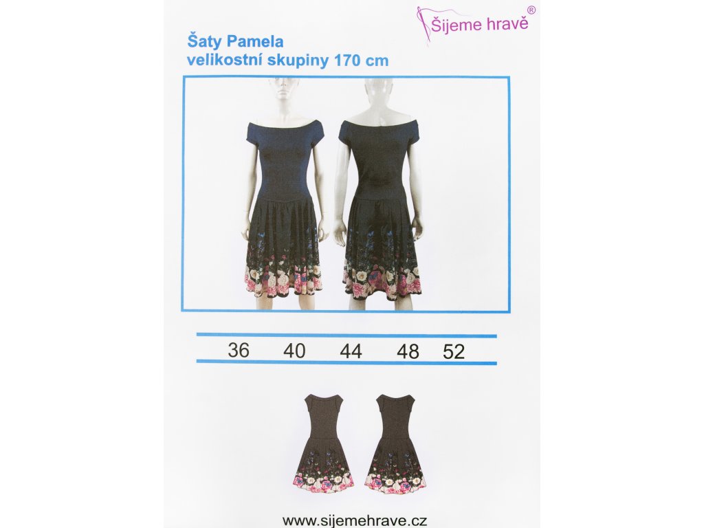 Střih na šaty Pamela ve velikostech 36 - 52 zpracovaný pro výšku postavy 170 cm.